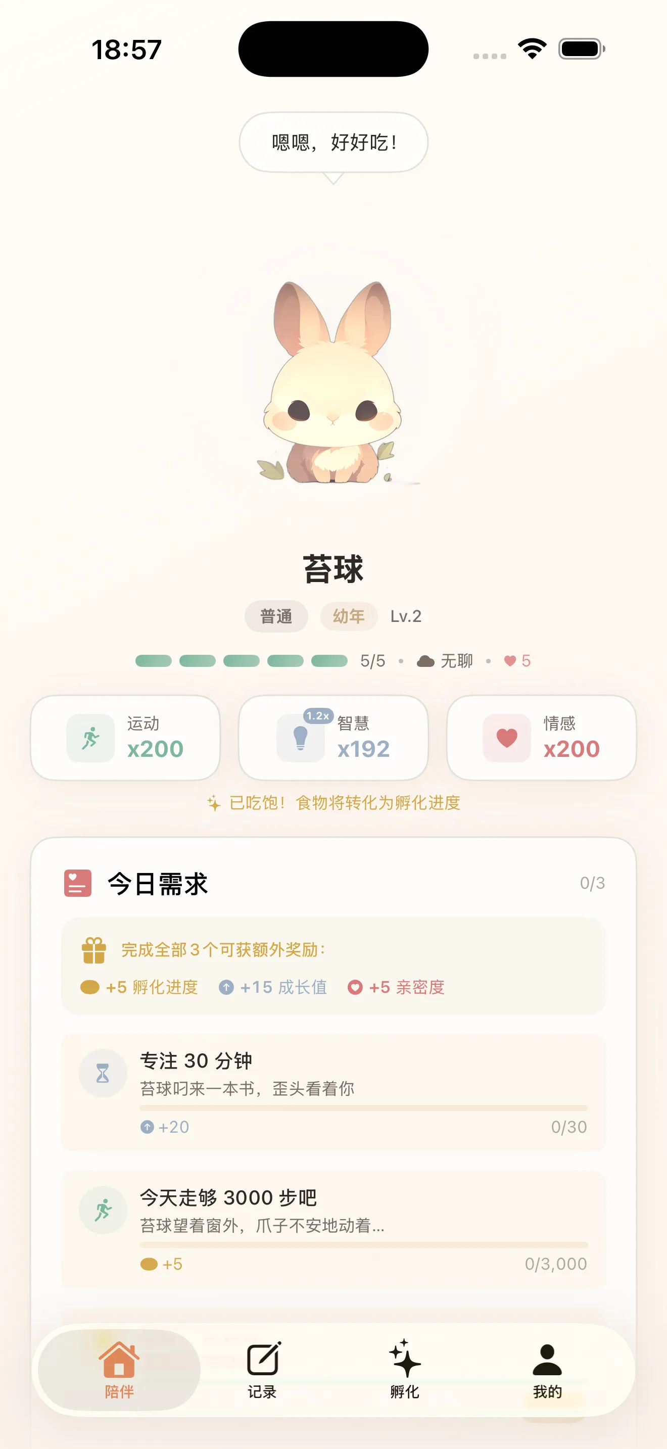 走路、专注、记录心情——你的生活数据化作食物,喂养属于你的小精灵。